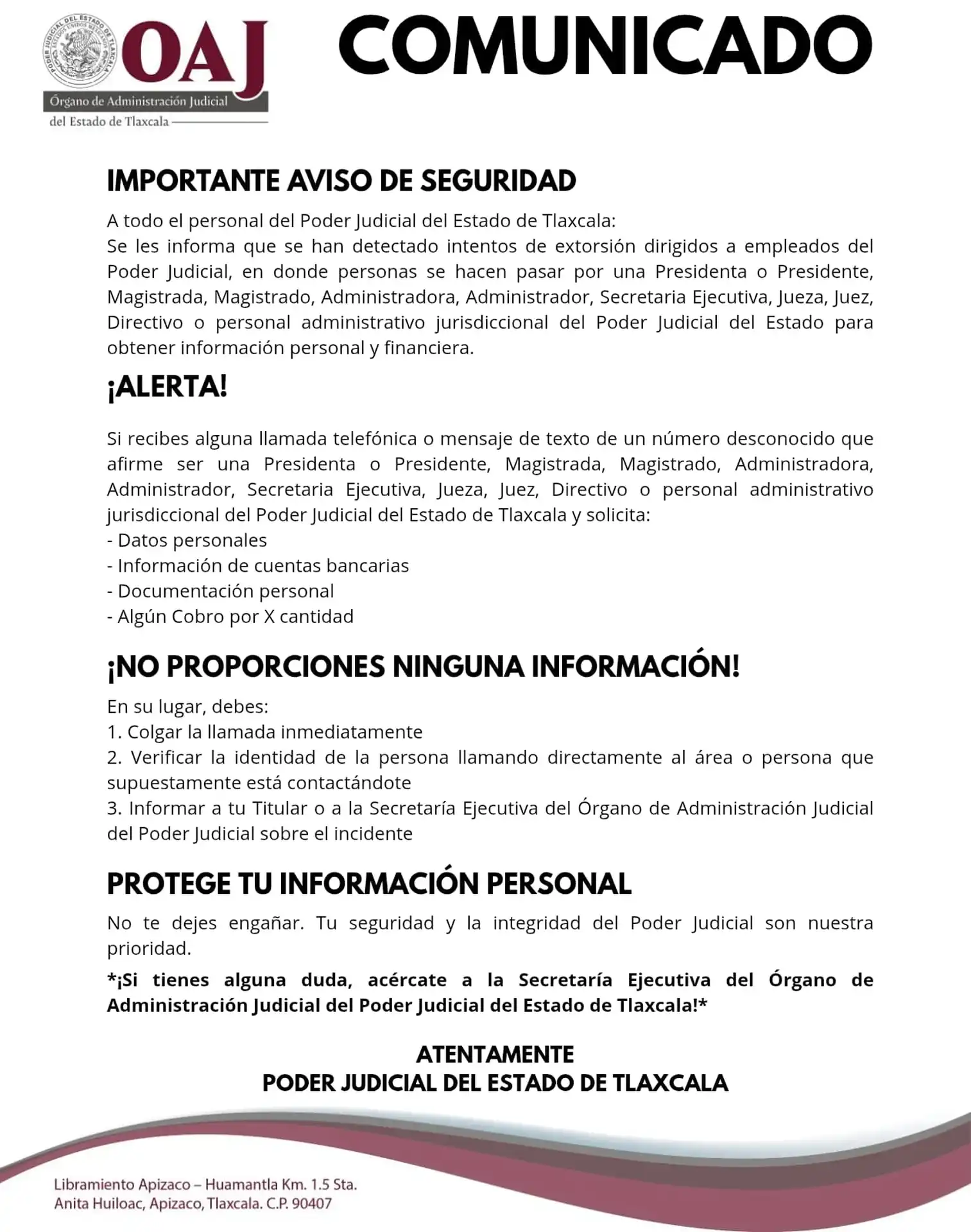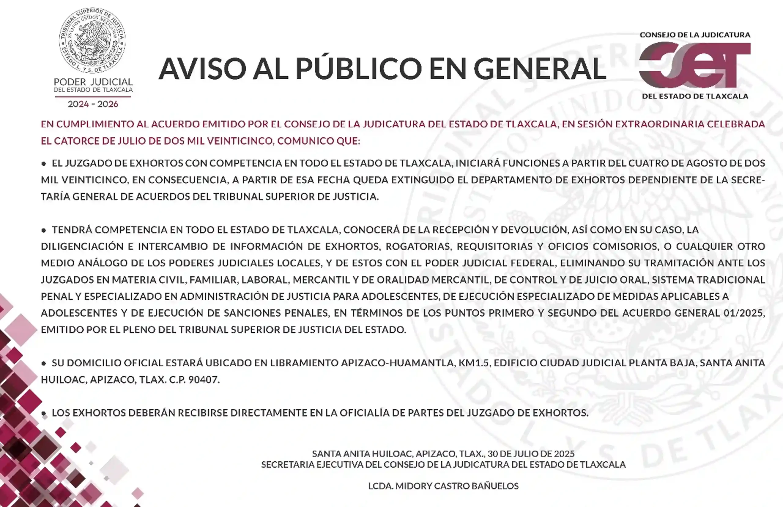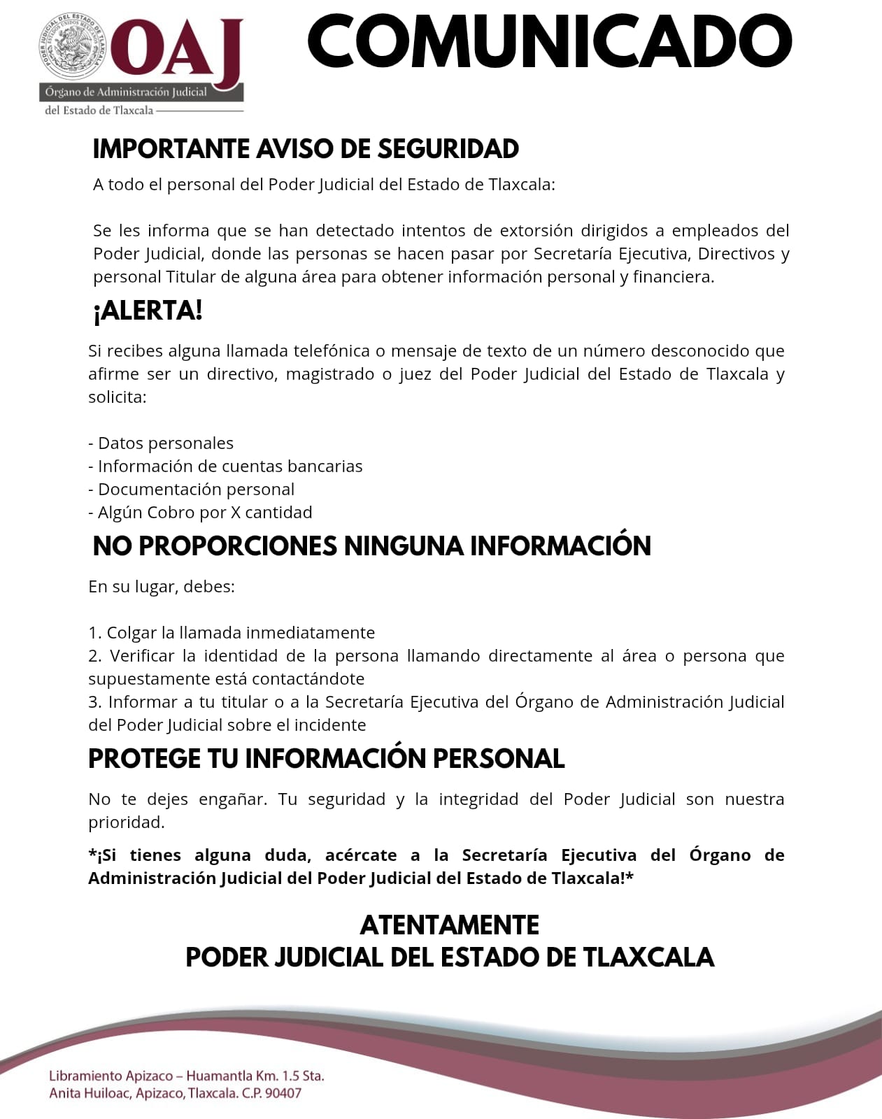 Avisos y Comunicados al público en general y a los servidores públicos del Poder Judicial del Estado de Tlaxcala