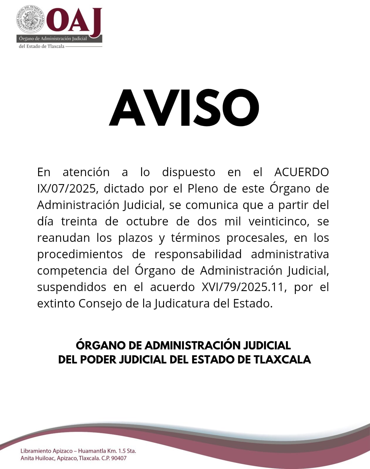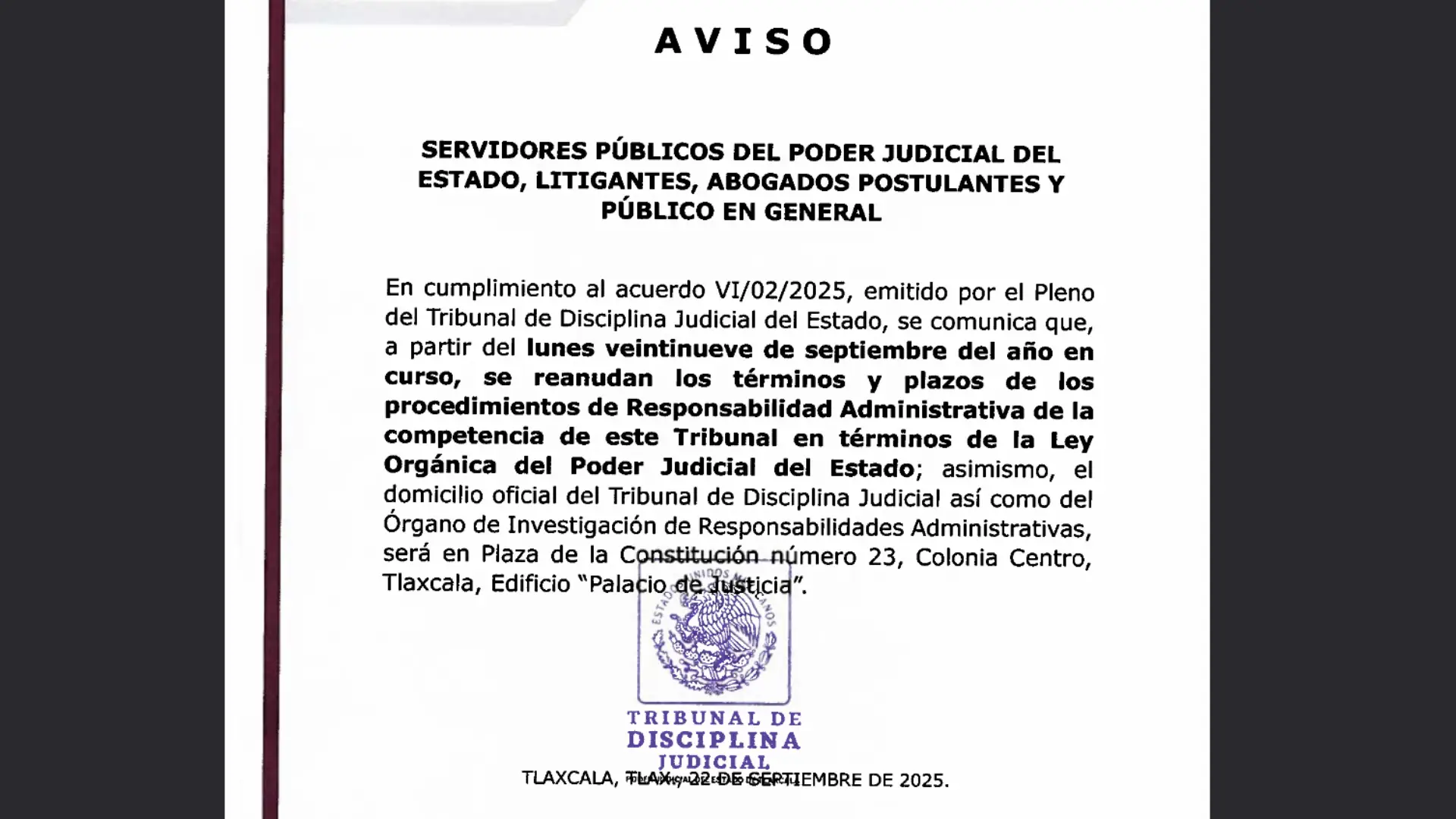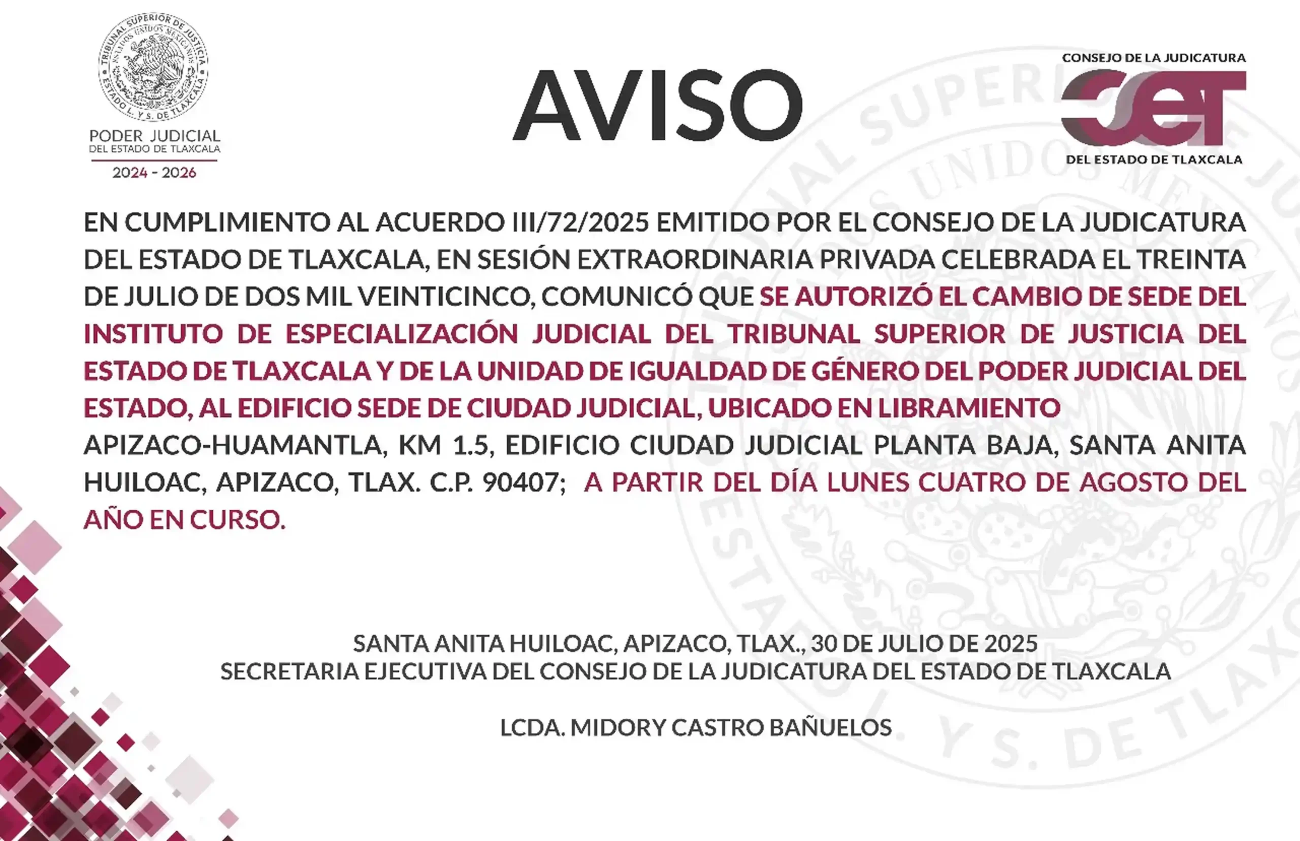 Avisos y Comunicados al público en general y a los servidores públicos del Poder Judicial del Estado de Tlaxcala