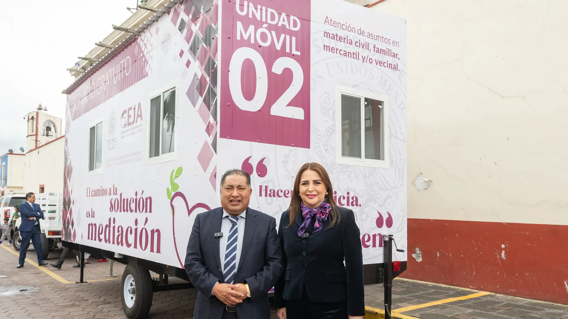 En sendos eventos efectuados en sus explanadas principales, la presidenta del Poder Judicial de Tlaxcala, Anel Bañuelos Meneses, junto con los presidentes municipales de San Damián Texoloc, David Sánchez Rincón y de Ixtacuixtla de Mariano Matamoros, Alberto Hernández Olivares, dieron el banderazo de inicio de actividades de las Unidades Móviles del Centro Estatal de Justicia Alternativa (CEJAMÓVIL), las cuales brindarán servicio de asesoría jurídica y la solución de problemas de índole civil, familiar, mercantil, vecinal y hasta penal a las y los ciudadanos de ambas comunas.