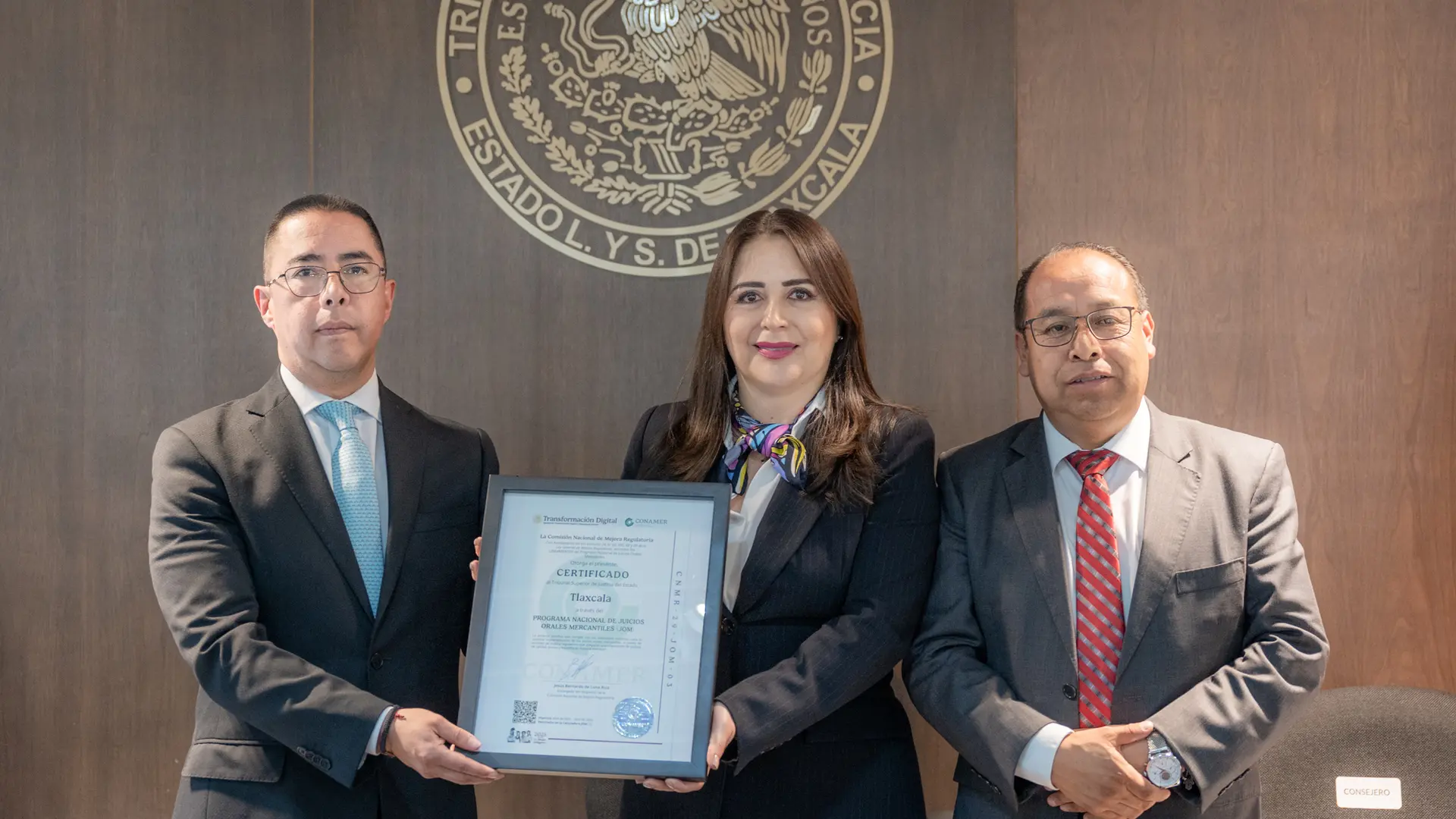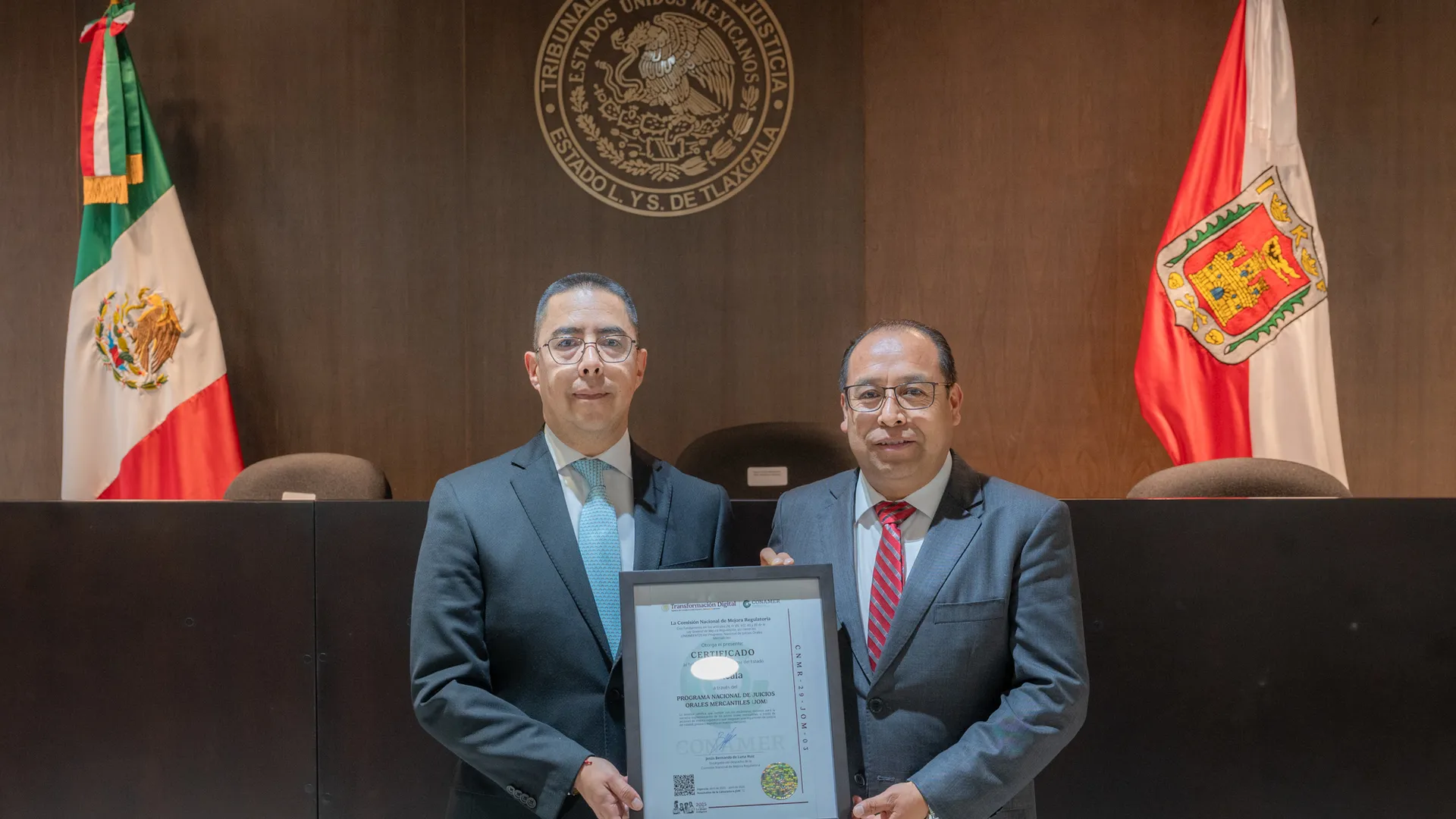 La presidenta del Poder Judicial de Tlaxcala, Anel Bañuelos Meneses, entregó este día al Juzgado Mercantil y de Oralidad Mercantil del Distrito Judicial de Cuauhtémoc, el certificado expedido por la Comisión Nacional de Mejora Regulatoria al Tribunal Superior de Justicia del Estado de Tlaxcala, el cual garantiza que este juzgado cumple con los estándares mínimos establecidos para la implementación eficaz de los juicios orales mercantiles.