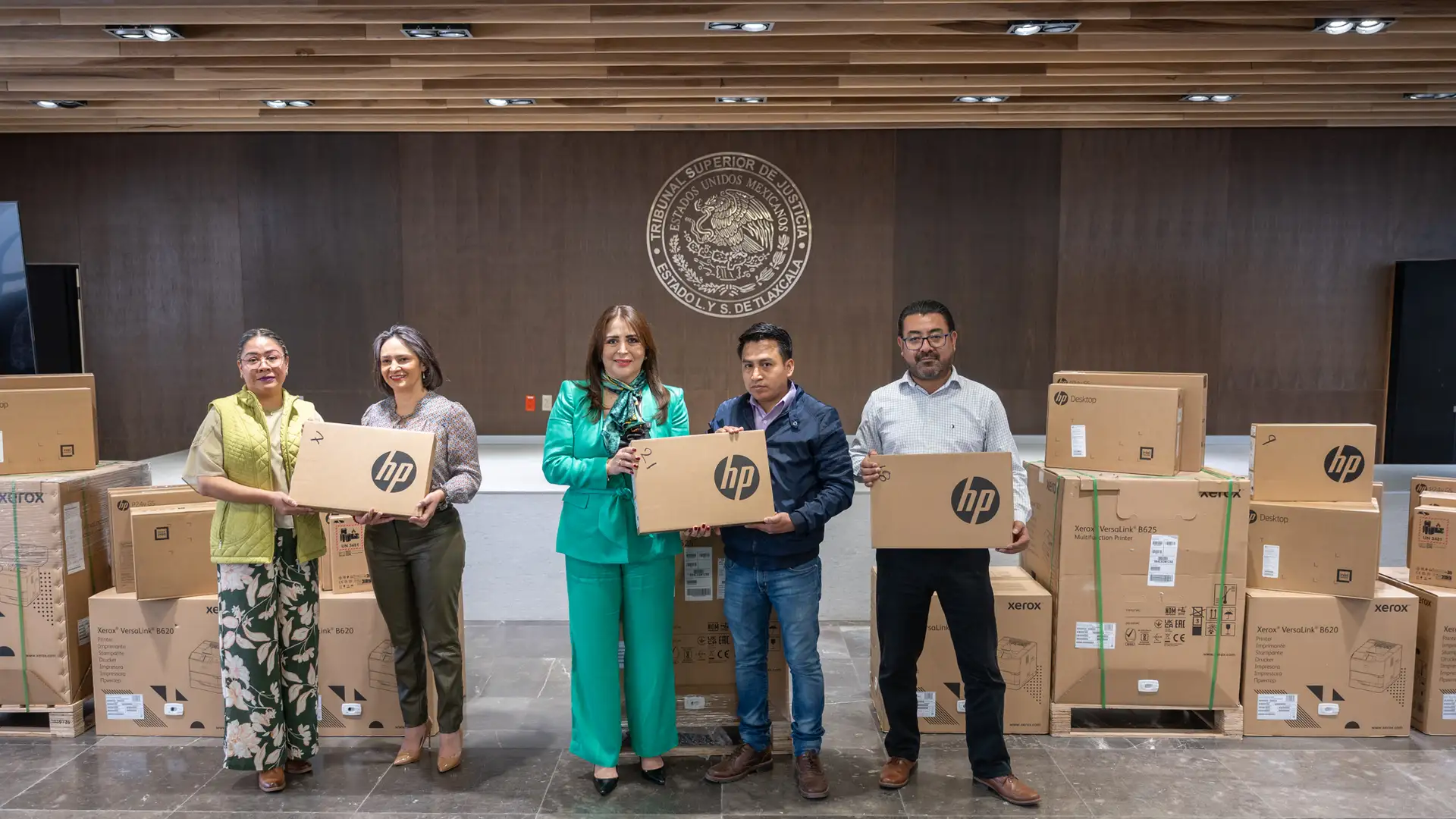 La magistrada presidenta del Tribunal Superior de Justicia y del Consejo de la Judicatura del Estado (TSJE-CJE), realizó la entrega simbólica de estos equipos y refirió que el programa de equipamiento durante su administración ha sido permanente, por lo que confió en que las y los servidores públicos hagan un uso adecuado y responsable de los mismos, sobre todo porque se trata de las herramientas que les permitirán brindar mejores resultados.