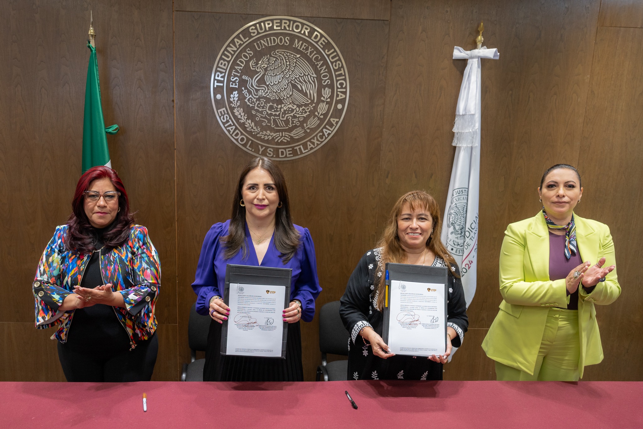 La Presidenta del Poder Judicial de Tlaxcala, Anel Bañuelos Meneses y la Representante Legal y Directora del Instituto Tlaxcalteca de Posgrados, NANTLI S. C., María Eugenia Figueroa Delgado, firmaron este día un convenio de colaboración que beneficiará a las y los servidores públicos de las diferentes áreas administrativas y jurisdiccionales con el fortalecimiento de sus conocimientos académicos.
